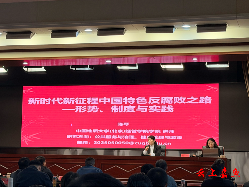 4月2日,县委党校邀请中国地质大学(北京)经管学院陈琴讲师作题为《新时代新征程中国特色反腐败之路——形势、制度与实践》的专题讲座。